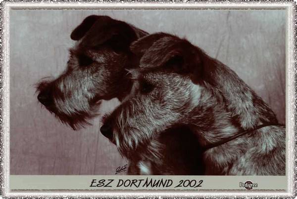 Breed Standard Head: Long, but in nice proportion to the rest of the body; the skull flat, rather narrow between the ears, and narrowing slightly toward the eyes; free from wrinkle, with the stop hardly noticeable except in profile. The jaws must be strong and muscular, but not too full in the cheek, and of good punishing length. The foreface must not fall away appreciably between or below the eyes; instead, the modeling should be delicate. An exaggerated foreface, or a noticeably short foreface, disturbs the proper balance of the head and is not desirable. The foreface and the skull from occiput to stop should be approximately equal in length. Excessive muscular development of the cheeks, or bony development of the temples, conditions which are described by the fancier as "cheeky," or "strong in head," or "thick in skull" are objectionable. The "bumpy" head, in which the skull presents two lumps of bony structure above the eyes, is to be faulted. The hair on the upper and lower jaws should be similar in quality and texture to that on the body, and of sufficient length to present an appearance of additional strength and finish to the foreface. Either the profuse, goat-like beard, or the absence of beard, is unsightly and undesirable. Teeth: Should be strong and even, white and sound; and neither overshot nor undershot. Lips: Should be close and well-fitting, almost black in color. Nose: Must be black. Eyes: Dark brown in color; small, not prominent; full of life, fire and intelligence, showing an intense expression. The light or yellow eye is most objectionable, and is a bad fault. Ears: Small and V-shaped; of moderate thickness; set well on the head, and dropping forward closely toward the outside corner of the eye. The top of the folded ear should be well above the level of the skull. A "dead" ear, hound-like in appearance, must be severely penalized. It is not characteristic of the Irish Terrier. The hair should be much shorter and somewhat darker in color than that on the body. Neck: Should be of fair length and gradually widening toward the shoulders; well and proudly carried, and free from throatiness. Generally there is a slight frill in the hair at each side of the neck, extending almost to the corner of the ear. Shoulders and Chest: Shoulders must be fine, long, and sloping well into the back. The chest should be deep and muscular, but neither full nor wide. Body: The body should be moderately long. The short back is not characteristic of the Irish Terrier, and is extremely objectionable. The back must be strong and straight, and free from an appearance of slackness or "dip" behind the shoulders. The loin should be strong and muscular, and slightly arched, the ribs fairly sprung, deep rather than round, reaching to the level of the elbow. The bitch may be slightly longer than the dog. Hindquarters: Should be strong and muscular; thighs powerful; hocks near the ground; stifles moderately bent. Stern: Should be docked, taking off about one quarter. It should be set on rather high, but not curled. It should be of good strength and substance; of fair length and well covered with harsh, rough hair. Feet and Legs: The feet should be strong, tolerably round, and moderately small; toes arched and turned neither out nor in, with dark toenails. The pads should be deep, and must be perfectly sound and free from corns. Cracks alone do not necessarily indicate unsound feet. In fact, all breeds have cracked pads occasionally, from various causes. Legs moderately long, well set from the shoulders, perfectly straight, with plenty of bone and muscle; the elbows working clear of the sides; pasterns short, straight, and hardly noticeable. Both fore and hind legs should move straight forward when traveling; the stifles should not turn outward. "Cowhocks"--that is, the hocks turned in and the feet turned out--are intolerable. The legs should be free from feather and covered with hair of similar texture to that on the body to give proper finish to the dog. Coat: Should be dense and wiry in texture, rich in quality, having a broken appearance, but still lying fairly close to the body, the hairs growing so closely and strongly together that when parted with the fingers the skin is hardly visible; free of softness or silkiness, and not so long as to alter the outline of the body, particularly in the hindquarters. On the sides of the body the coat is never as harsh as on the back and quarters, but it should be plentiful and of good texture. At the base of the stiff outer coat there should be a growth of finer and softer hair, lighter in color, termed the undercoat. Single coats, which are without any undercoat, and wavy coats are undesirable; the curly and the kinky coats are most objectionable. Color: Should be whole-colored: bright red, golden red, red wheaten, or wheaten. A small patch of white on the chest, frequently encountered in all whole-colored breeds, is permissible but not desirable. White on any other part of the body is most objectionable. Puppies sometimes have black hair at birth, which should disappear before they are full grown. Size: The most desirable weight in show condition is 27 pounds for the dog and 25 pounds for the bitch. The height at the shoulder should be approximately 18 inches. These figures serve as a guide to both breeder and judge. In the show ring, however, the informed judge readily identifies the oversized or undersized Irish Terrier by its conformation and general appearance. Weight is not the last word in judgment. It is of the greatest importance to select, insofar as possible, terriers of moderate and generally accepted size, possessing the other various characteristics. General Appearance: The over-all appearance of the Irish Terrier is important. In conformation he must be more than a sum of his parts. He must be all-of-a piece, a balanced vital picture of symmetry, proportion and harmony. Furthermore, he must convey character. This terrier must be active, lith