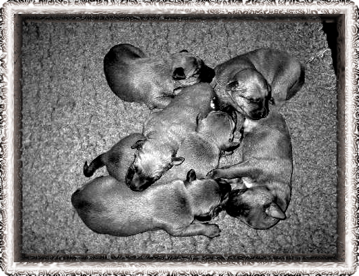 01.08.2003 Ich wiege heute 9,6 kg und bin 44 cm hoch. 09.08.2003 Ich wiege heute 9,6 kg und bin 44,5 cm hoch. 16.08.2003 Ich wiege heute 9,8 kg und bin 45 cm hoch. 18.08.2003 Heute war es endlich soweit. Auf dem Hundeplatz, als ich mit Taiga mal wieder gespielt habe, ist mir mein letzter Milchzahn ausgefallen. Jetzt müssen die neue nur noch richtig rauß wachsen. Aber da sind schon mal alle. Nur die hintersten Backenzähne fehlen noch. Die kommen ja aber erst mit 8-9 Monaten. Also habe sie noch etwas Zeit. 22.08.2003 Ich bin heute 45 cm hoch. 29.08.2003 Ich wiege heute 10,3 kg und bin 45 cm hoch. 05.09.2003 Ich wiege heute 10,4 kg und bin 45,5 cm hoch. 06.09.2003 Heute bin ich zum ersten mal Heiß geworden. Leider kann ich jetzt die nächsten 3-4 Wochen nicht in den Welpentreff gehen. Najam dann muß ich jetzt halt den Karli so lange ärgern. Der bekommt jetzt aber Beruhigungsmittel, damit er sich nicht so wegen meiner Läufigkeit aufregen muß. Jetzt will er gar nicht mehr mit mir spielen. So ein Mist. Aber wer einen IT kennt weiß das die da nicht locker lassen werden. Geht nicht gibt´s nicht! 11.09.2003 Ich bin heute 46 cm hoch. 15.09.2003 Heute war es den ganzen Tag eigentlich ziemlich ruhig. Erst abends wurde es richtig aufregend. Erst hat Carolin im Karli sein Fresse und sein Körbchen gepackt und ist dann mit ihm auf den Hundeplatz gefahren. Da ich ja mit Carolins Vater dann alleine wahr und er noch nicht ein ganz so erbrobtes Auge hat, was mich betrifft, habe ich erst mal im Haus nachgeschaut, was es denn so alles gibt. Dabei bin ich dann auf die Futtertonne gestoßen. Die hatte Carolin nämlich vergessen zu zu machen. Ich hatte zwar erst mein Abendessen bekommen, aber was man hat hat man und es könnte ja auch eine Hungerszeit anbrechen. Also habe ich dann so viel gefressen, wie ich nur konnte. Später kam dann Frauchen wieder. Ich habe mich natürlich tierisch gefreut. Dann ist mir aber aufgefallen, daß Karli gar nicht dabei wahr. Wo der wohl ist? Carolin ist dann jedenfalls gleich mit mir Gassi gegangen und erst als wir wieder daheim wahren ist ihr aufgefallen, daß ich ganz rund gefressen wahr. Da sie ja aber nicht wußte das ich den dicken Bauch vom Fressen hatte und ich es ihr ja auch nicht sagen konnte, hat sie natürlich gleich panik bekommen und ist mit mir zum notdiensthabenden Tierarzt gefahren. Der hat Carolin dann erst mal wieder beruhigt. Der Tierartz war aber ganz begeistert von mir. Ich glaube wenn er gekonnt hätte, hätte er mich bei sich behalten. Als wir dann endlich wieder zu Hause waren und ich meine üblich Patrole gemacht habe, ob denn alle da sind, ist mir aufgefallen, daß nicht nur Karli weg wahr, sondern auch Carolins Mama. Ich kann euch sagen, daß ist vielleicht ein verrückter Tag!!! (zur Auflösung: Karli wurde wegen der Läufigkeit zur Oma ausquatiert und die Mama ist geschäftlich verreist) 21.09.2003 Heute ist Karli endlich wieder gekommen. Er war wie auch ich ganz aus dem Häuschen mich wieder zu sehen. Dann hat er aber andauernd versucht mich zu besteigen. Das fand ich weniger witzig, denn ich wollte ja mit ihm spielen und das ging dann nicht. So langsam fängt er sich wieder und hört damit auf, bei jeder Gelegenheit mir den Hintern zu schlecken. Dann ist Carolins Mama auch endlich wieder gekommen. Jetzt bin ich morgens nicht mehr ganz so alleine. Ich bin heute 46,5 cm hoch. 22.09.2003 Heute abend ist Karli schon wieder ausgezogen. Carolin hat gesagt, daß es noch keinen Sinn macht. Der Ärmste würde sonst noch einen Herzinfakt bekommen. Weil ich noch so gut rieche. 26.09.2003 Heute durfte Karli nun endlich wieder einziehen und muß nicht gleib wieder gehen. Das hat mir Carolin versprochen. Der war aber ganz schön aufdringlich und da mußte ich mir als sein Ohr schnappen, damit ich flüchten konnte. Der Tag war ganz schön anstrengend für uns beide. 27.09.2003 Heute hat Carolin im Karli sein ganzes Fell geklaut. Und die Gemeinheit war, daß sie es doch tatsächlich gewagt hat und hat mich vor der Kellertür stehen lassen. Da habe ich ihr mal ganz schön die Meinung gesagt. Als sie fertig war, war Karli Fell nur noch 7mm lang der Arme. Mit mir kann sie sowas Gott sei dank nicht machen. Dann wäre ich wahrscheinlich nicht mehr rot, sondern blond. Da habe ich ja mal wieder Glück gehabt. Ich wiege heute 10,7 kg. 02.10.2003 Hurra!!! Heute sind meine Geschwister auf die Welt gekommen. Carolin und ich freuen uns riesig darüber. Die sechs sind richtige Vollgeschwister zu mir. Es sind innerhalb von 1 Stunde und 40 Minuten fünf Jungs zur Welt gekommen und dann, als keiner mehr daran geglaubt hat, zwei Stunden später, hatte dann das einzige Mädchen ihren Auftritt. Da hat mein Papa der Statistik einen Strich durch die Rechnung gemacht. Normalerweise sind nämlich in Würfen von ihm immer mehr Mädels als Jungs. 03.10.2003 Ich bin heute 47 cm hoch und wiege 11 kg. 12.10.2003 Ich wiege heute 11,11 kg und bin 47 cm hoch. 13.10.2003 Hier könnt Ihr nun meine neuen Geschwister sehen. Sind die nicht goldig? Es scheint nun auch noch der Fall zu sein, daß zwei Brüder eineiig sind. Das wird aber erst noch per DNA-Tast untersucht. Wer interesse an einem der Kleinen hat, muß nur einmal auf eines der zwei Bilder klicken und schon ist er auf der Homepage der Züchterin. Soweit ich das weiß sind noch zwei Rüden abzugeben. |